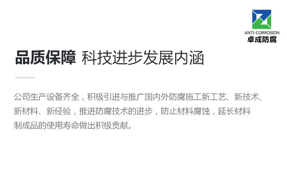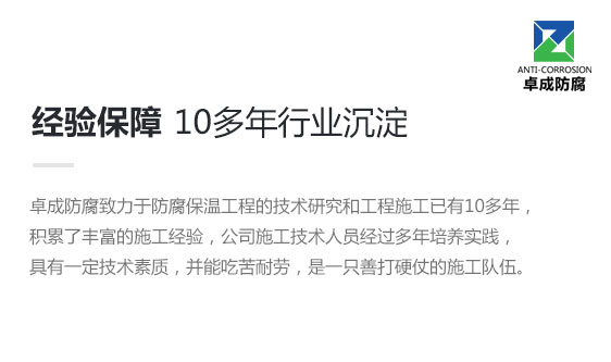 浙江卓成防腐工程有限公司(原名上虞市達(dá)成防腐工程有限公司)成立于2005年,注冊資本1000萬元,是一家專業(yè)承包防腐保溫工程施工企業(yè),公司座落在紹興市杭州灣上虞經(jīng)濟技術(shù)開發(fā)區(qū)。公司現(xiàn)有職工60余人,其中專業(yè)技術(shù)人員15人,公司下設(shè)多個項目經(jīng)理部。公司致力于防腐保溫工程的技術(shù)研究和工程施工,生產(chǎn)設(shè)備齊全,技術(shù)工藝先進,積累了豐富的施工經(jīng)驗,具有較雄厚的經(jīng)濟實力。公司施工技術(shù)人員經(jīng)過多年培養(yǎng)實踐,具有一定技術(shù)素質(zhì),并能吃苦耐勞,是一只善打硬仗的施工隊伍。